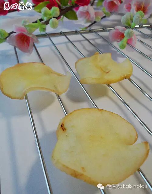 12、取出苹果片,苹果片再次缩小,放在烤架上通风晾干即可。