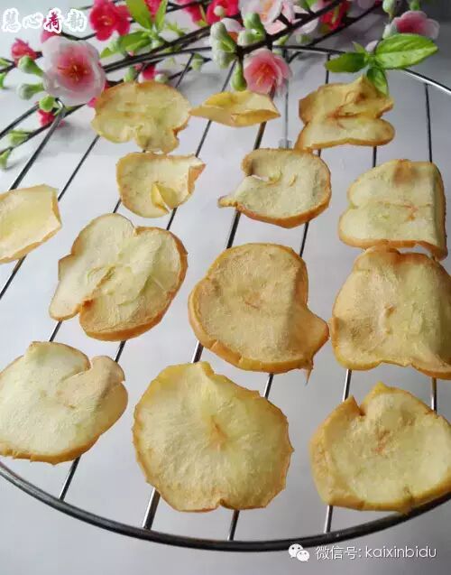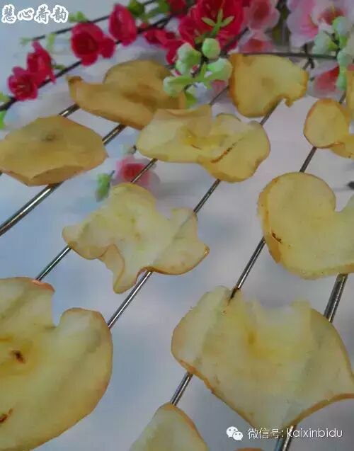 1、苹果片尽量切的薄一点,但也不要太薄,太薄烤制过程苹果片萎缩最后蜷缩在一起就不是片了。