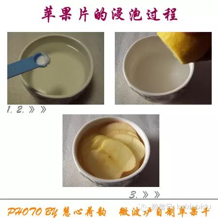 2、切好的苹果片用食盐柠檬水浸泡几分钟,防止其遇到空气或加热过程氧化变黑。